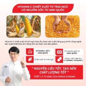 💯Vitamin C 1000 của hãng Korea eundan là một trong những thương hiệu uy tín nhất được người dân Hàn tin dùng có đại diện là MC quốc dân Yoon Jae Suk với thành phần nguyên liệu được nhập khẩu 100% từ Anh, đạt tiêu chuẩn châu âu.