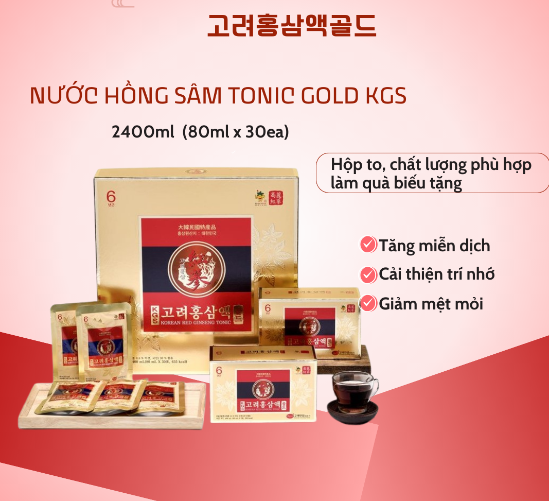 NƯỚC HỒNG SÂM TONIC GOLD KGS GIẢM MỆT MỎI,TĂNG CƯỜNG MIỄN DỊCH HỘP TO 30 GÓI