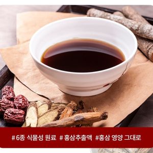 Nước chiết xuất hỗn hợp thực vật 63,81%(thể rắn hơn 3%), nước chiết xuất hồng sâm 30% (thể rắn hơn 0,6%, sâm Hàn Quốc), mật ong, đường Oligosaccharide, đường Fructose, nước chiết xuất hỗn hợp hoàng cầm, vitamineB6, canxi, chất điều chỉnh độ acid, cát căn, nấm linh chi, táo đỏ,đương quy, xuyên khung